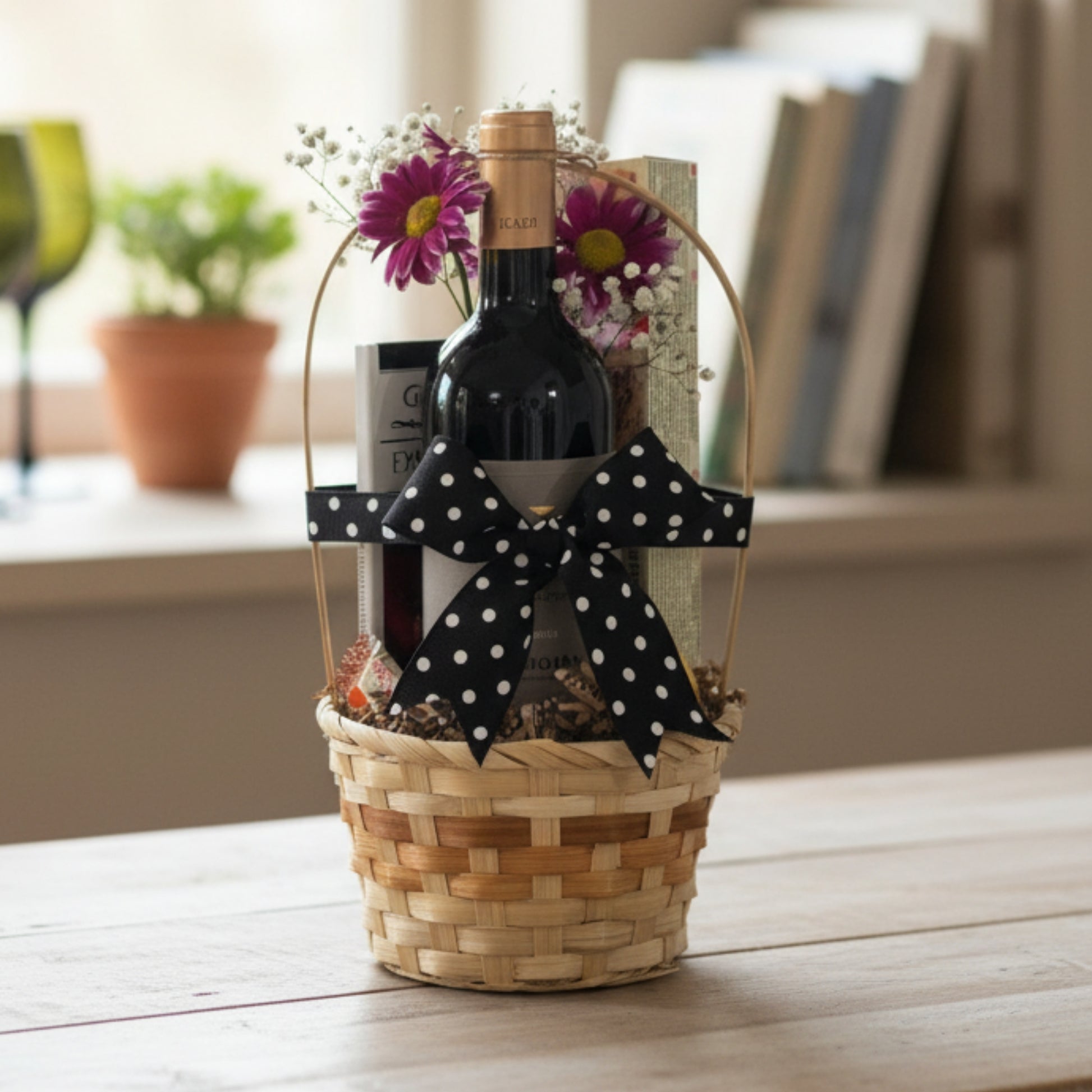 Un regalo refinado y distinguido que reúne los esenciales para un momento especial. Esta canasta incluye una botella de vino, galletas gourmet y una barra de chocolate oscuro, todo elegantemente presentado en un estilo atemporal. Perfecto para celebraciones íntimas, agradecimientos a clientes o regalos corporativos con gusto y distinción. Disponible para entrega en San Juan, Guaynabo, Caguas, Bayamón, Dorado, Trujillo Alto, Aguas Buenas, Carolina o cualquier parte de Puerto Rico.