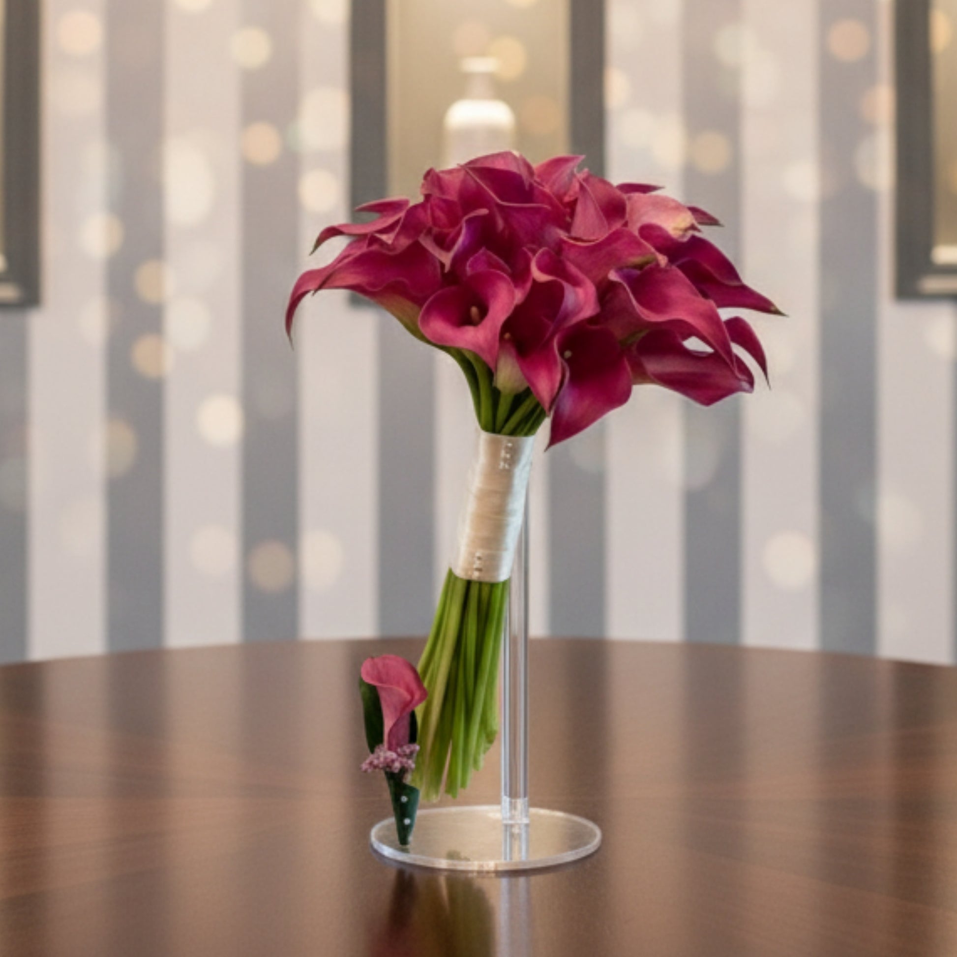 Un ramo de novia que habla por sí solo. Este diseño elegante presenta calas blancas puras, símbolo de elegancia, pureza y amor eterno. Cada flor es cuidadosamente seleccionada para crear una composición impecable, atada con cinta satinada para un acabado refinado y sofisticado. Disponible para entrega en San Juan, Guaynabo, Caguas, Bayamón, Dorado, Trujillo Alto, Aguas Buenas, Carolina o cualquier parte de Puerto Rico. Perfecto para bodas clásicas, ceremonias íntimas o sesiones fotográficas inolvidables. Un ramo atemporal para un momento único.
