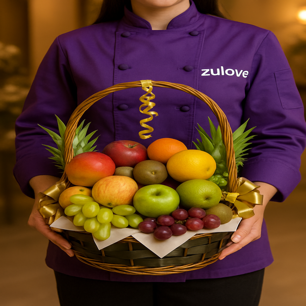 Beautiful and elegant basket featuring a selection of fresh fruits such as apples, grapes, oranges, and more. Presented with basket and ribbon, this healthy and sophisticated option is perfect for celebrations or as a thoughtful gift, leaving a memorable impression. Available for delivery in San Juan, Guaynabo, Caguas, Bayamón, Dorado, Trujillo Alto, Aguas Buenas, Carolina and throughout Puerto Rico.