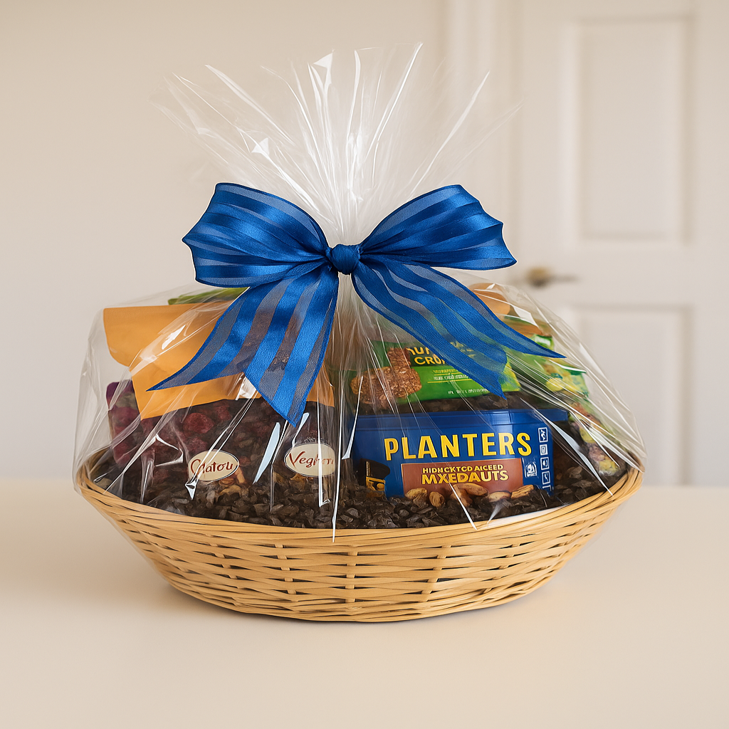 Una canasta de regalo cuidadosamente con una exquisita selección de nueces, frutas secas y bocados saludables. Ideal para compartir o regalar con intención. Perfecta para oficinas, visitas especiales o como un gesto nutritivo lleno de sabor y elegancia. Disponible para entrega en San Juan, Guaynabo, Caguas, Bayamón, Dorado, Trujillo Alto, Aguas Buenas, Carolina y zonas de Puerto Rico.